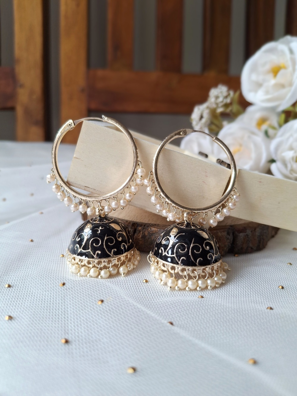 Meenakari Hoops Jhumka Black